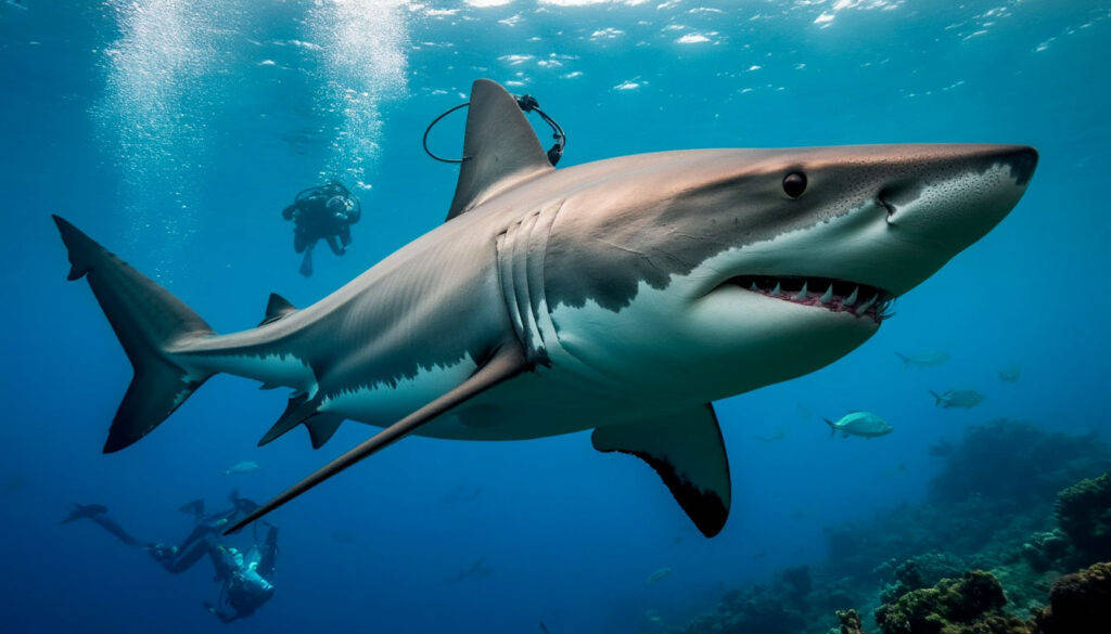 塔克的工作很有意思,他用自己的船为来自各国的游客安排游览活动。他会把人们放进封闭的铁笼里沉入水中,让他们近距离观赏鲨鱼。